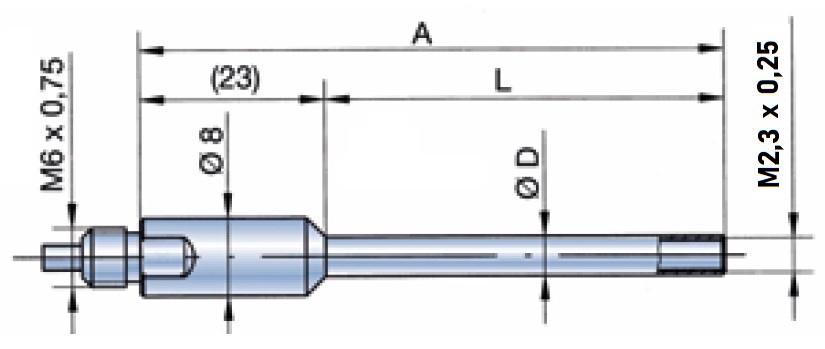 M2,3 x 0,25 auf M6 x 0,75
